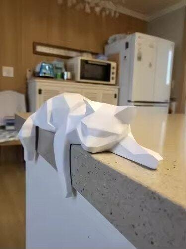 Faceted surfaces replace smooth curves. Sharp edges define form instead of flowing lines. The cat's natural elegance emerges through reduction, not addition—every plane intentional, every angle calculated.