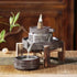Requires backflow incense cones (not included). Heavier, cooler smoke sinks through carved channels creating descending cascade effect. Visual display lasts 15-20 minutes per cone.