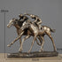 Resin sculpture capturing the intensity of horse racing with detailed rider and mount in full gallop, designed as sophisticated vintage-inspired home decoration.