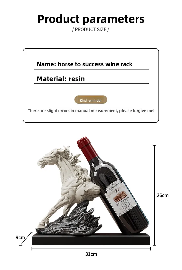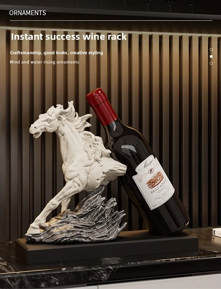 A horse frozen mid-leap, muscles coiled in the exact moment of launch, mane and tail streaming behind like wind made visible, its powerful arc creating the perfect cradle for your finest bottle. This is not a wine rack pretending to be art or art compromising function. This is sculptural engineering where dynamic form and practical purpose achieve equal sophistication, where the gesture of pouring wine becomes elevated ritual rather than mundane task. The kind of intentional presence that transforms bar carts into galleries and dining credenzas into conversation architecture.
