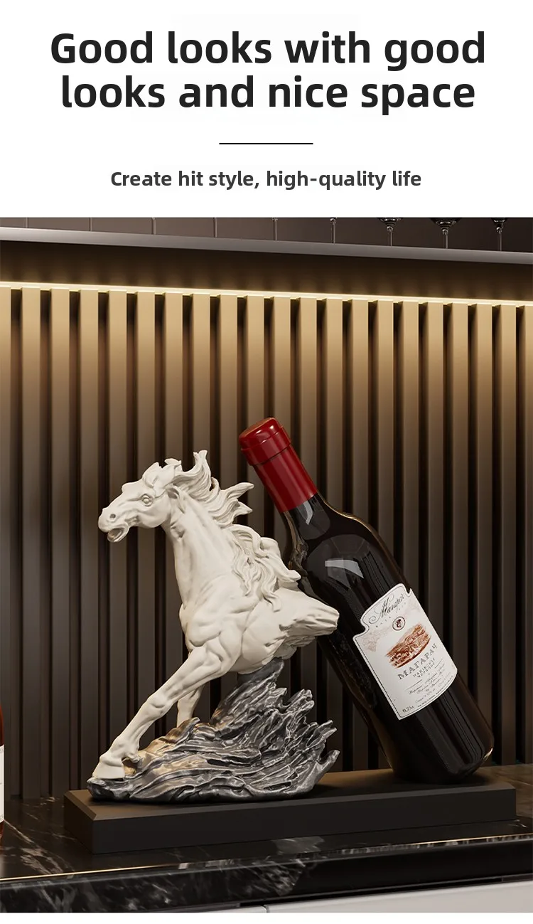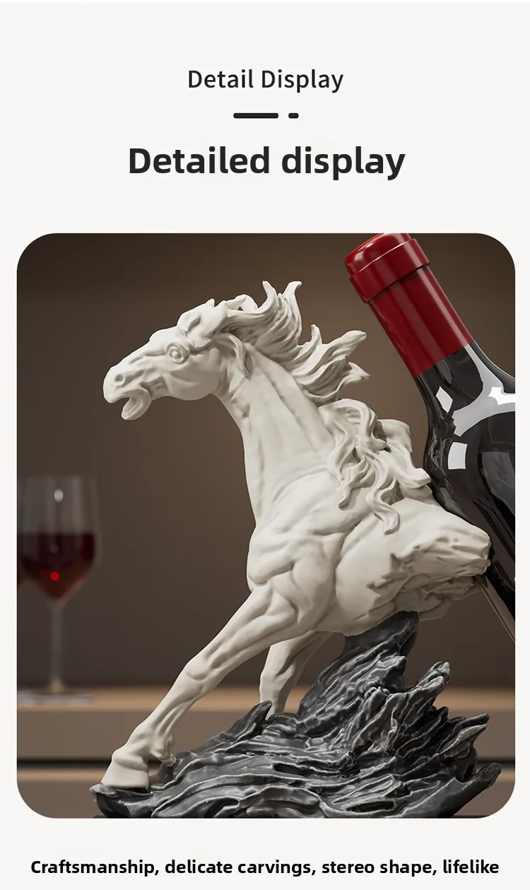 The rearing horse symbolizes untamed spirit, noble freedom, and triumphant celebration, making this the perfect vessel to honor wines and spirits representing their own forms of unbridled expression. The integration of sculptural art and functional wine display creates investment piece earning prominence through dual excellence: beautiful enough to display empty, practical enough to use daily.