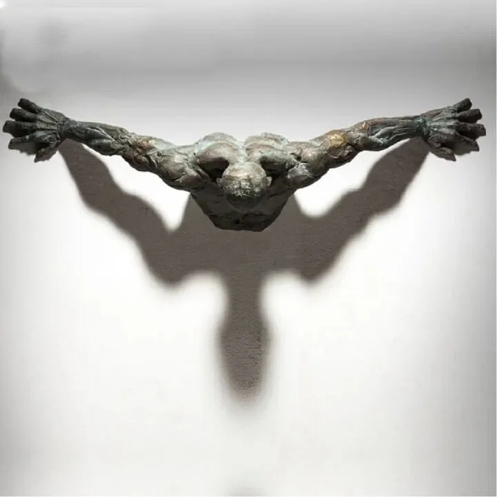 Not flat wall art. Figure projects 3-6cm from wall surface depending on pose. Creates actual dimensional depth and shadow play.