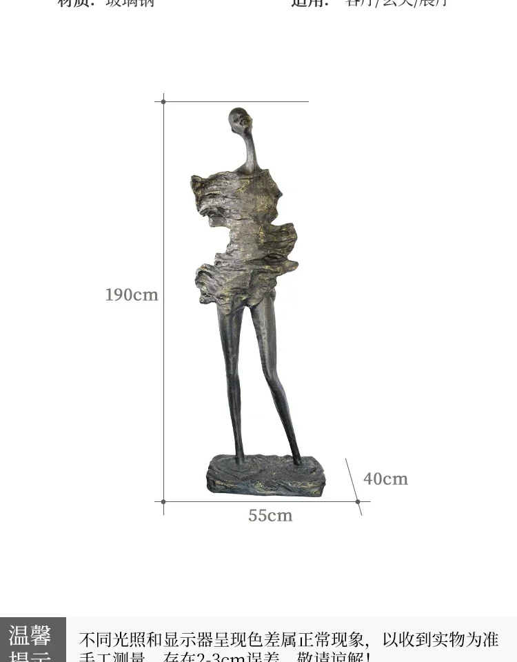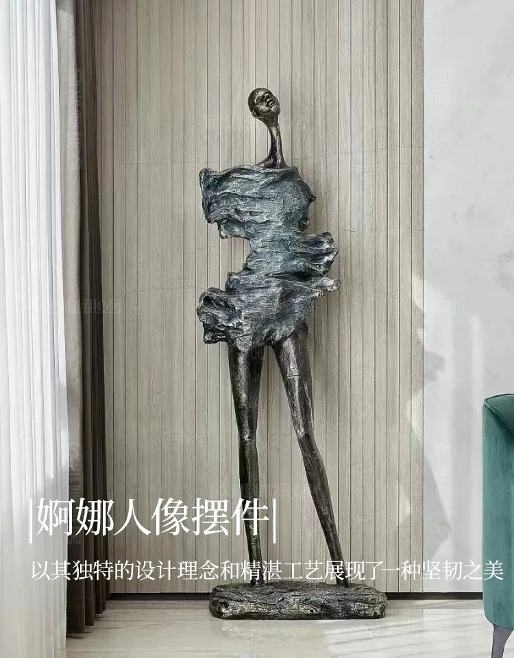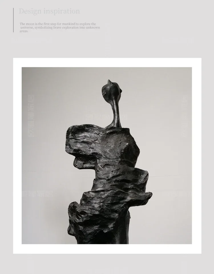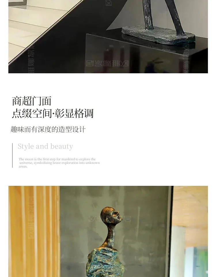 At 190cm (the large scale recommended for commercial installations and homes with 10+ foot ceilings), this approaches monumental sculpture territory while maintaining residential accessibility. The medium 140cm version suits standard ceiling heights without compromising dramatic impact. Both scales share the distinctive design vocabulary: ultra-elongated legs creating ballet-like grace despite impossible proportions, minimalist head maintaining abstraction while suggesting contemplation, textured platform base grounding the vertical thrust. The narrow footprint (just 16 inches deep at largest) means this fits corner placements and against-wall positioning where wider sculptures demand central floor space.