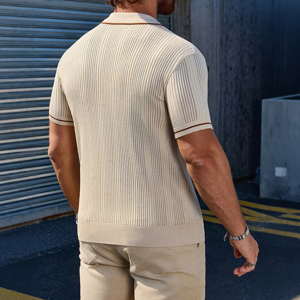 Effortless sophistication for warm-weather occasions. This textured knit polo combines vintage-inspired ribbing with contemporary fit, creating refined casual style perfect for date nights and upscale gatherings.