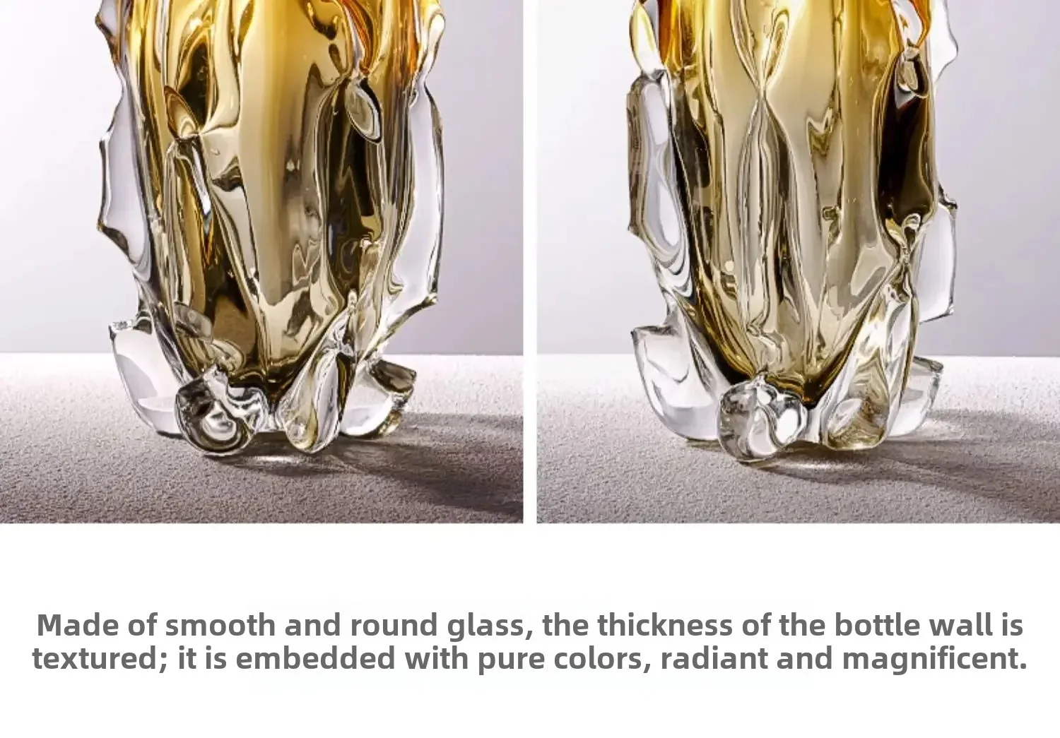 Glass vessels represent clarity, transformation, and refined taste across cultures. Amber tones symbolize warmth, optimism, and golden hour tranquility. Hand-blown craftsmanship signals appreciation for artisan techniques over mass production.