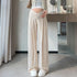 Fatti da na mistura dolza da cotun e poliestere, quests pantalons presenten un cinturón incrocià cun V che s'assenta comodament sut il bump — offrind support senza pressiun. Il disegn larg e dret drapeja cun grazia per una respirabilitat durant tot il dì, sia che sit a casa o che sit a fora cun stil.